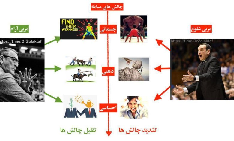 ۱. مربی در تمرین چالش های ذهنی و احساسی آنها را به حداقل رسانده و در بازی نیز چنین می کند.