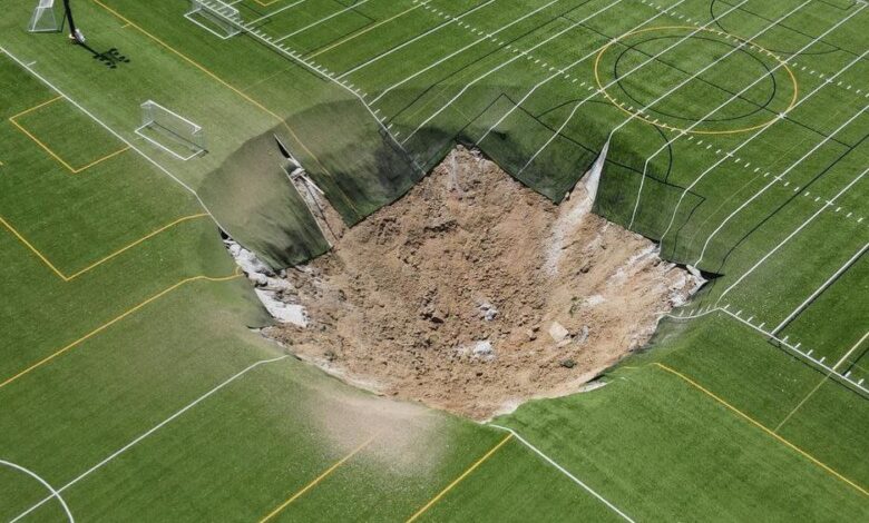یک سوراخ بزرگ زمین فوتبال را بلعید!